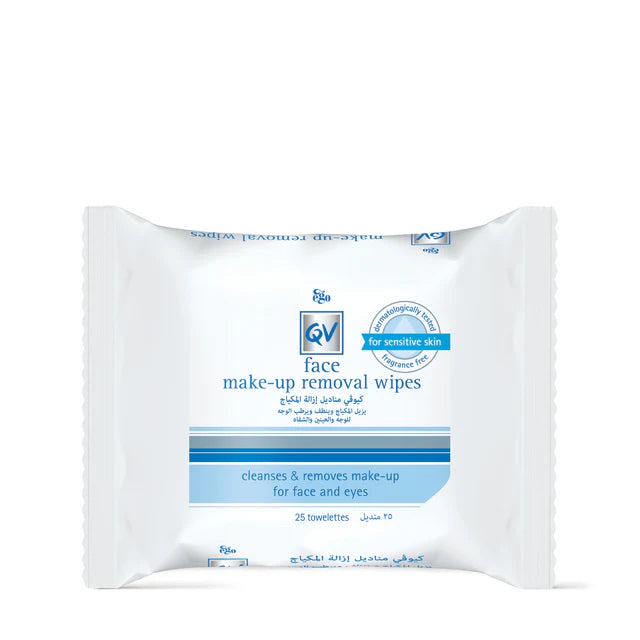 Dual action QV Face Make-up Removal Wipes have been designed to effectively remove make-up and oil, as well as leave skin moisturised and feeling clean and refreshed. QV Face Make-up Removal Wipes are strong enough to remove even waterproof make-up, yet gLanolin, fragrance & soap free.