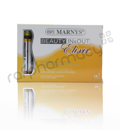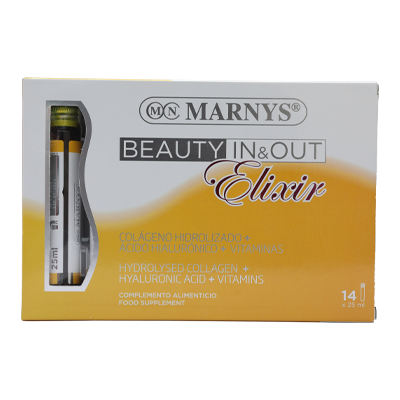 Beauty In & Out Elixir is a state-of-the-art food supplement perfect for those people who want to show a skin with youthful appearance and dazzling beauty.It is also recommended for periods when we need extra vitality in our skin and hair: seasonal changes, stress, high sun exposure and beauty treatments for the skin.Convenient format in single-dose drinkable vials.Forest fruit flavor.